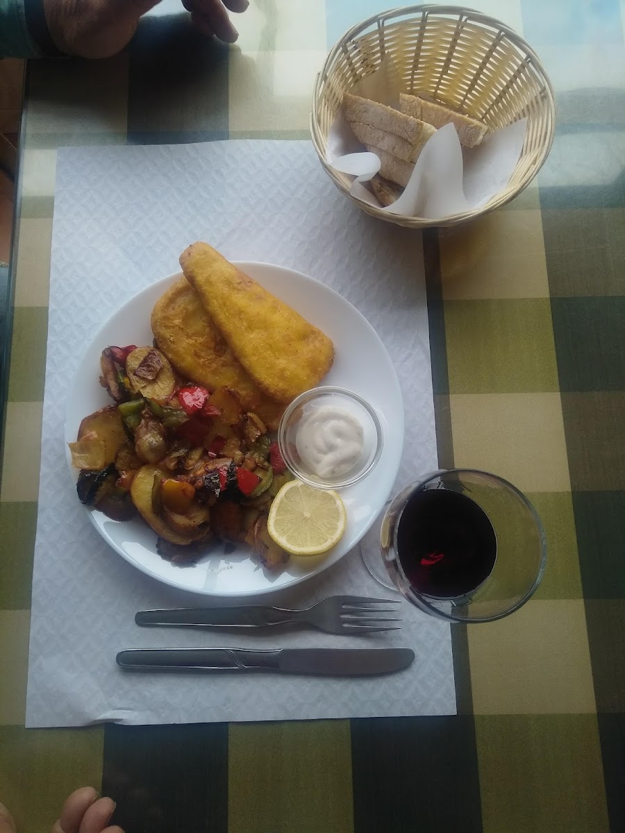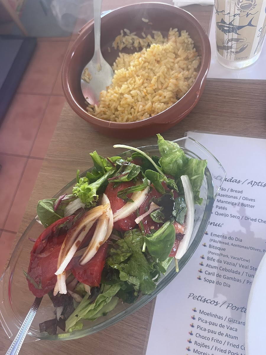 The menu leans on generous portions of traditional Portuguese café fare with a few crowd-pleasers like hamburgers, tostas, and fresh seafood, alongside daily specials that typically include a full combination of bread, olives, wine, espresso, and dessert. Prices are notably reasonable, making it a good spot for a filling lunch or an informal dinner, especially after exploring the nearby coast and countryside.